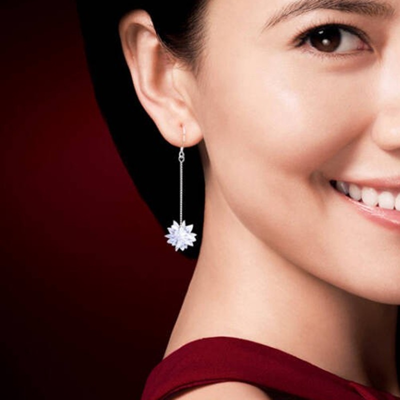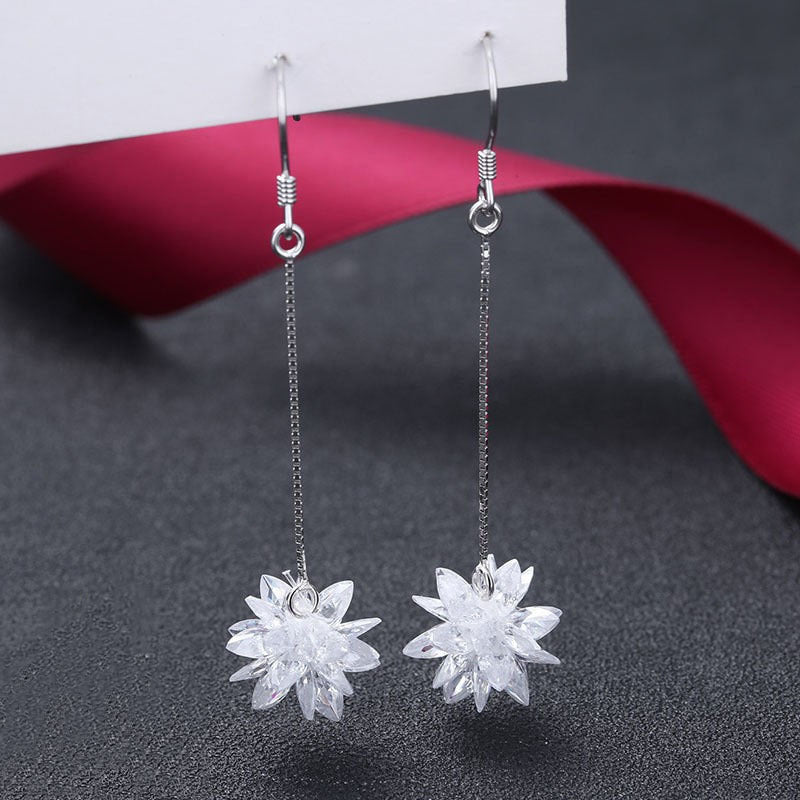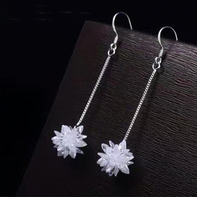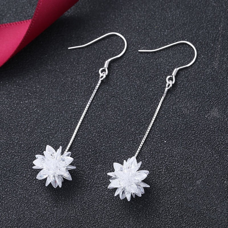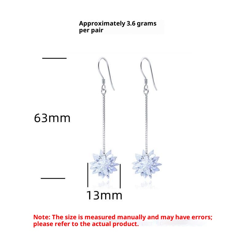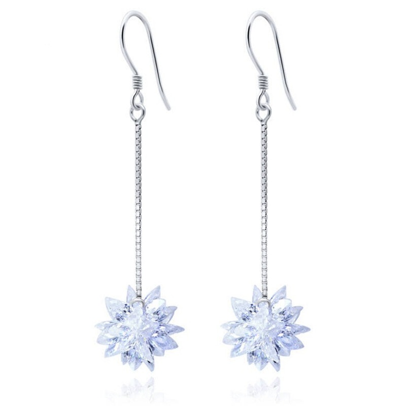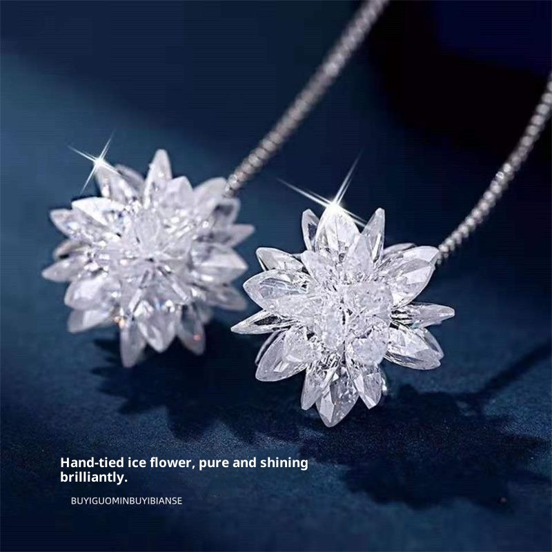 S925 Silver Ice Flower Long Ear Hooks